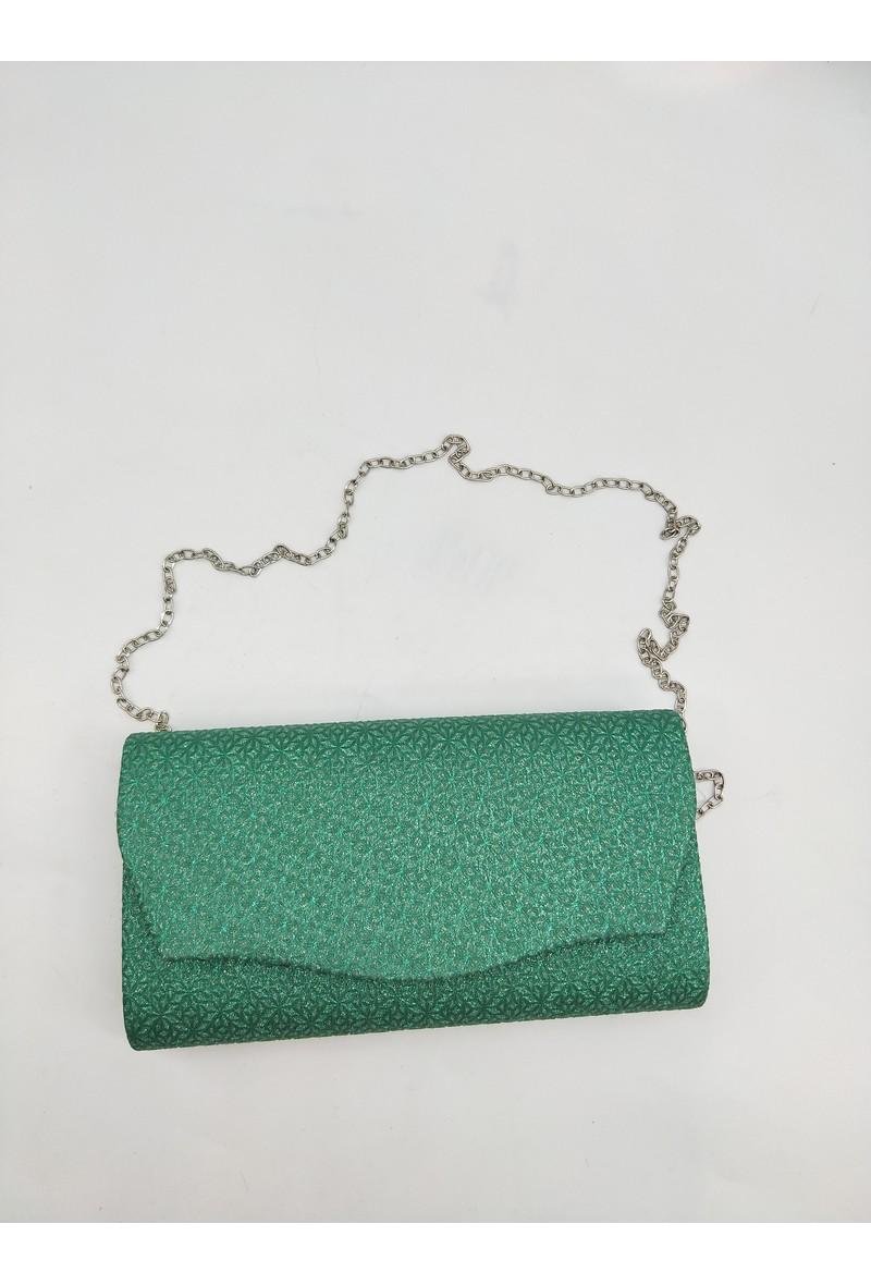 Deze elegante clutch straalt klasse uit met zijn glanzende glitterfinish en subtiel ingeweven motief. Dankzij het compacte formaat (22 x 12 x 4 cm) neem je eenvoudig je essentials zoals telefoon, make-up en sleutels mee. De clutch wordt geleverd met een fijne metalen schouderketting, zodat je hem zowel in de hand als crossbody of over de schouder kunt dragen.