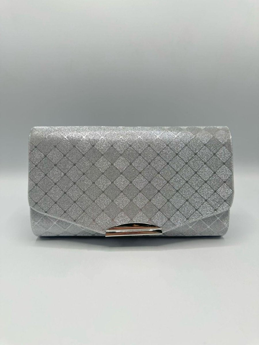Deze tijdloze clutch combineert eenvoud en glamour in één ontwerp. De glitterstof met subtiel ruitdessin zorgt voor een stijlvolle, luxueuze uitstraling, terwijl het metalen detail op de flap een moderne touch toevoegt. Dankzij de afmeting van 22 x 5 x 12 cm biedt de tas genoeg ruimte voor je essentials, zoals telefoon, make-up en sleutels.