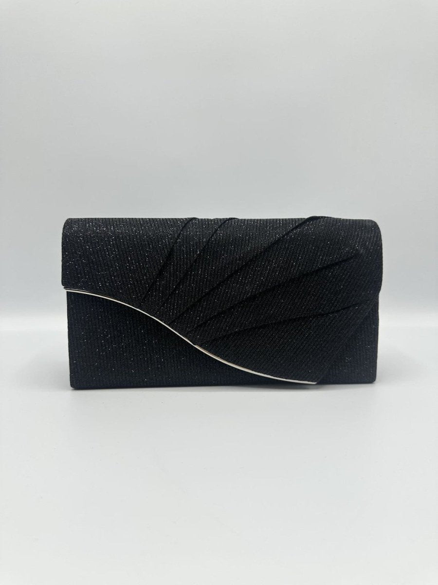 Deze elegante clutch heeft een verfijnd geplooid design met een subtiele glans, wat zorgt voor een chique en moderne uitstraling. De zachte diagonale lijnen en het strakke silhouet maken deze clutch tot een stijlvolle accessoire voor avond- en feestgelegenheden.