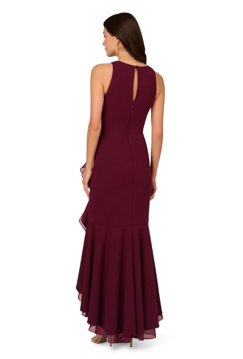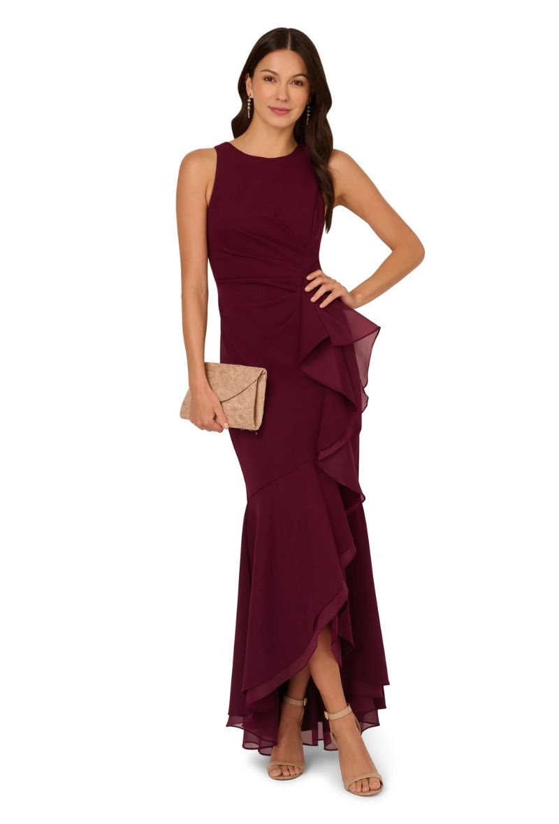 Deze elegante avondjurk van Adrianna Papell in een diepe bordeauxrode tint is een absolute eyecatcher. De verfijnde details en vrouwelijke pasvorm maken deze jurk perfect voor galafeesten, bruiloften of andere formele gelegenheden.