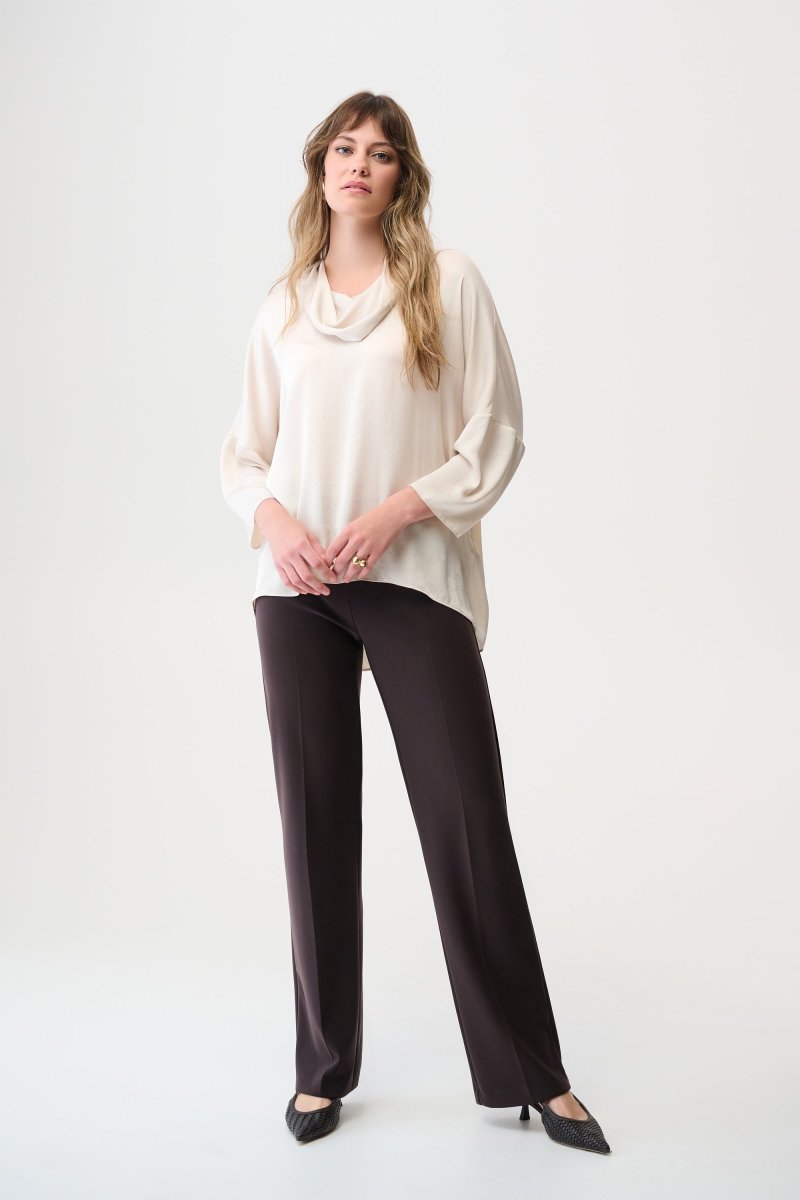 Deze stijlvolle blouse combineert moeiteloos comfort met elegantie. Het losvallende model en de driekwartmouwen geven een moderne, nonchalante uitstraling, terwijl de zachte watervalhals een vleugje verfijning toevoegt. Een bijzonder detail is de rij knopen op de rug, die de blouse een verrassend en chic accent geven.
