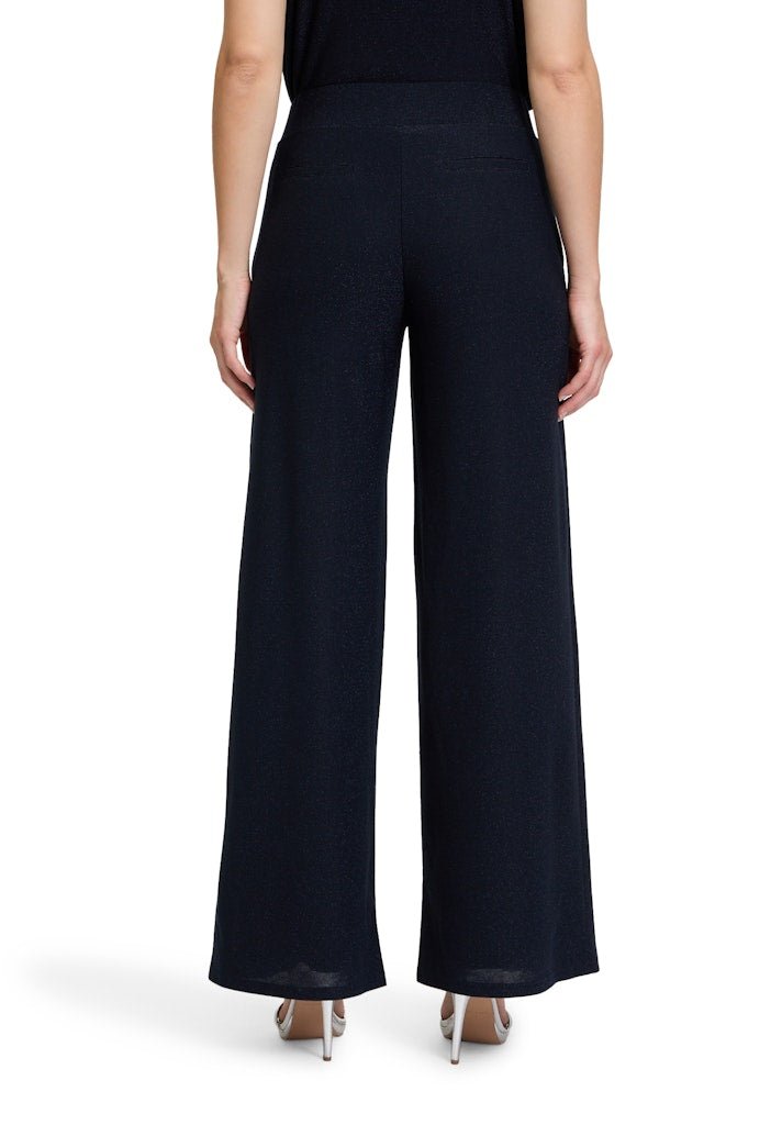 Deze elegante pantalon van Vera Mont is een tijdloos kledingstuk dat stijl en comfort moeiteloos combineert. De broek heeft een wijd uitlopende pijp die zorgt voor een sierlijke en moderne uitstraling, terwijl de elastische tailleband garant staat voor een comfortabele pasvorm. Gemaakt van een soepele stof met subtiele glans, biedt deze pantalon een verfijnde look die zowel geschikt is voor formele gelegenheden als voor een chique avond uit.