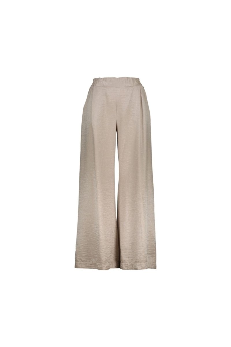 De broek heeft een hoge elastische tailleband voor extra draagcomfort en een losse, wijd uitlopende pijp, wat zorgt voor een elegante en vrouwelijke look. Dankzij de luchtige pasvorm is deze pantalon ideaal voor zowel een casual dagoutfit als een feestelijke gelegenheid.