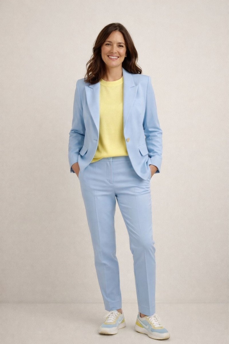 De blazer sluit met een enkele knoop en is afgewerkt met klepzakken en subtiele details die zorgen voor een luxe finish. Draag haar als set met de bijpassende pantalon voor een krachtige, stijlvolle look of combineer met een jurk of blouse voor een elegante touch.