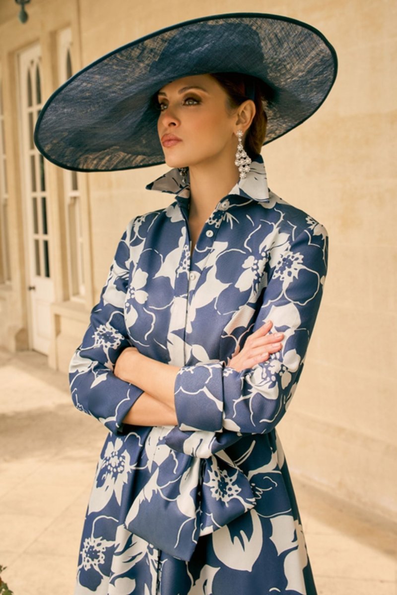De combinatie van de verfijnde bloemenprint en de gestructureerde stof geeft deze jurk een couture-achtige uitstraling — ideaal voor wie er bijzonder maar toch klassiek uit wil zien.