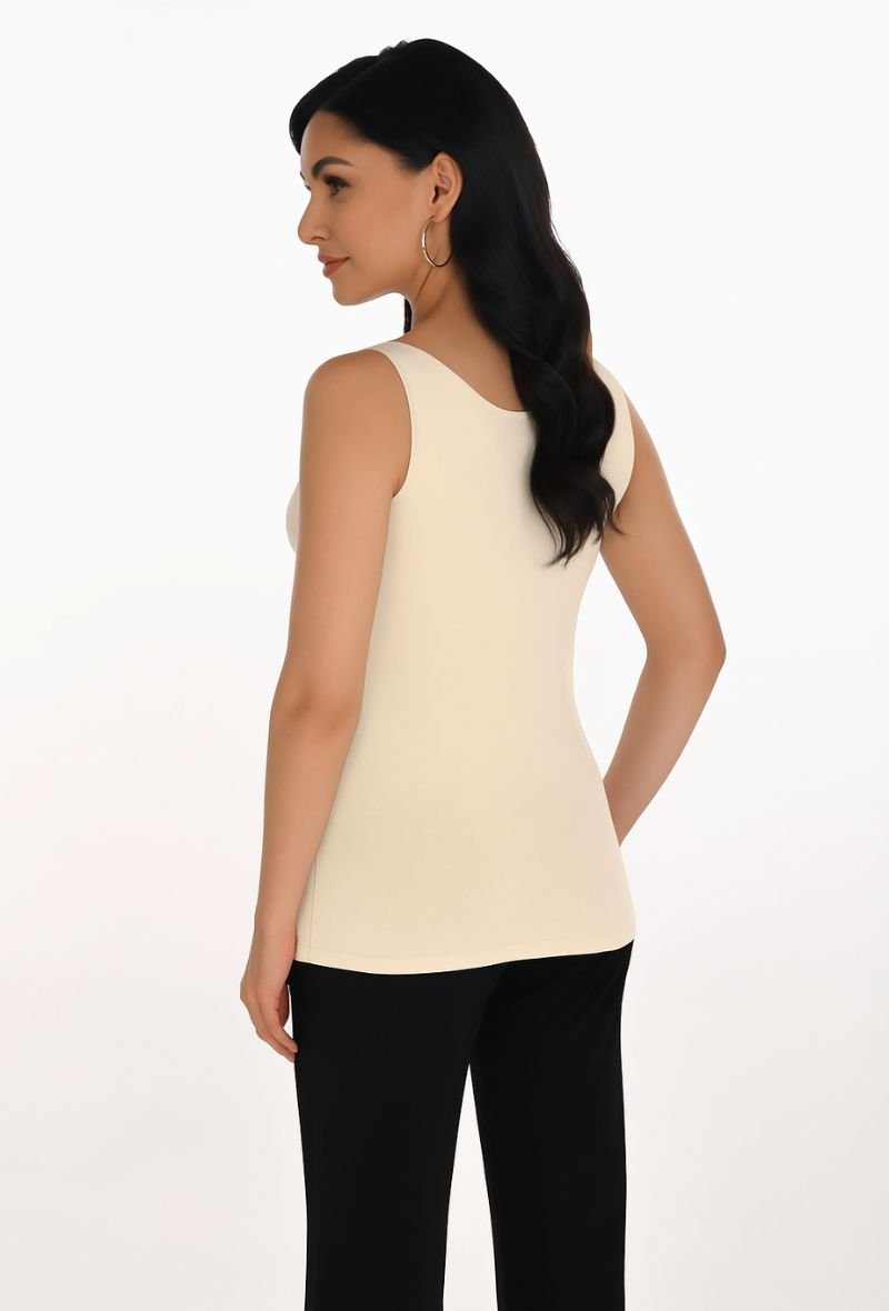 Deze elegante basis top van Frank Lyman is een absolute must-have in elke garderobe. De top is mouwloos, heeft een ronde halslijn en een aansluitende pasvorm die prachtig met het lichaam meevalt. Dankzij de zachte en elastische jersey kwaliteit draagt deze camisole comfortabel en is ze eindeloos te combineren – zowel casual onder een vest of blazer, als stijlvol op zichzelf.