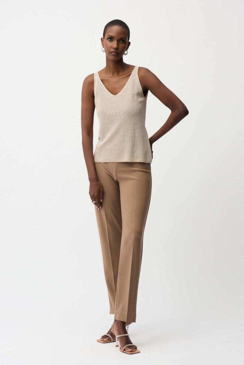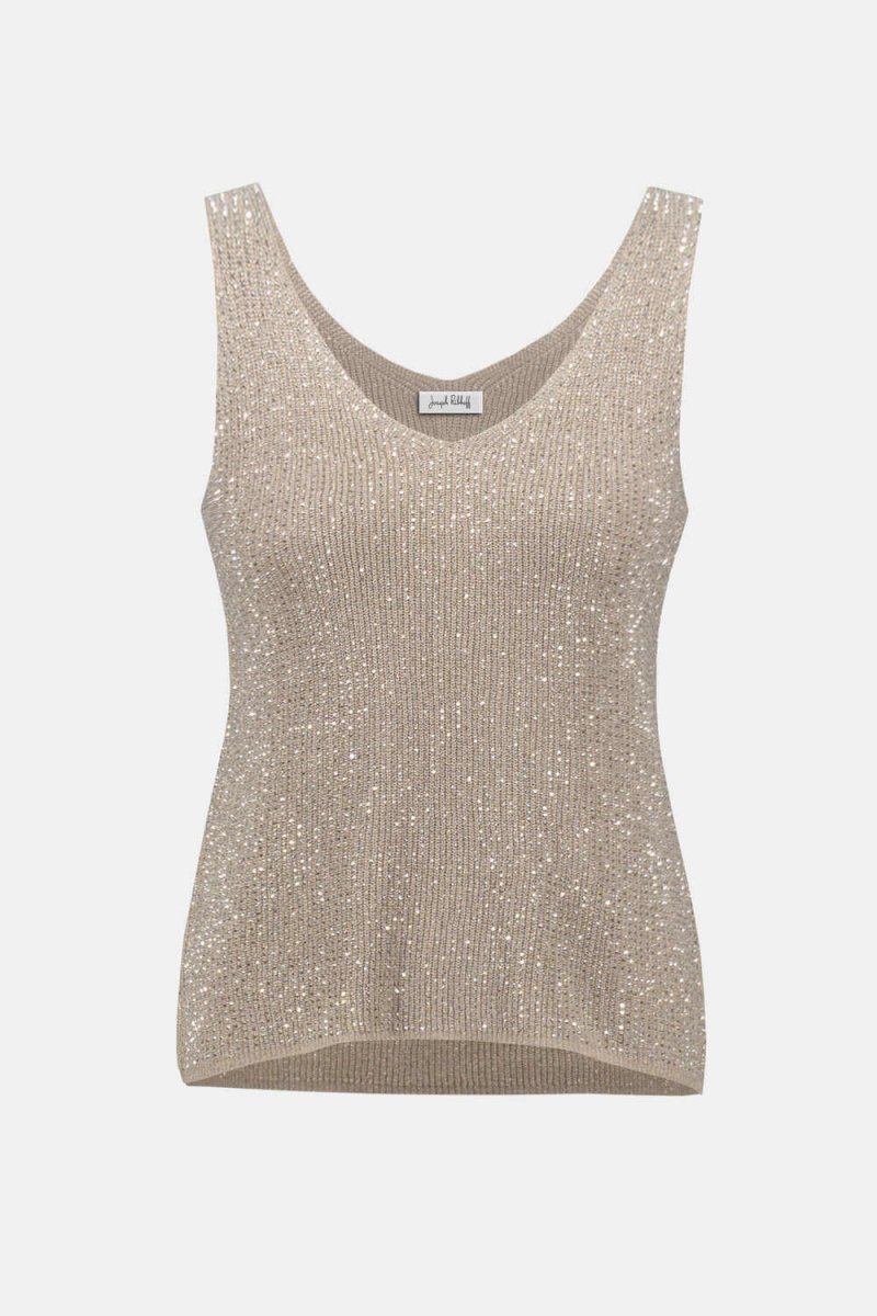 Voeg een vleugje subtiele glamour toe aan je garderobe met deze verfijnde metallic camisole van Joseph Ribkoff. Dit mouwloze topje combineert moeiteloos elegantie en comfort, dankzij de lichte, fijngebreide structuur met een schitterende metallic finish.