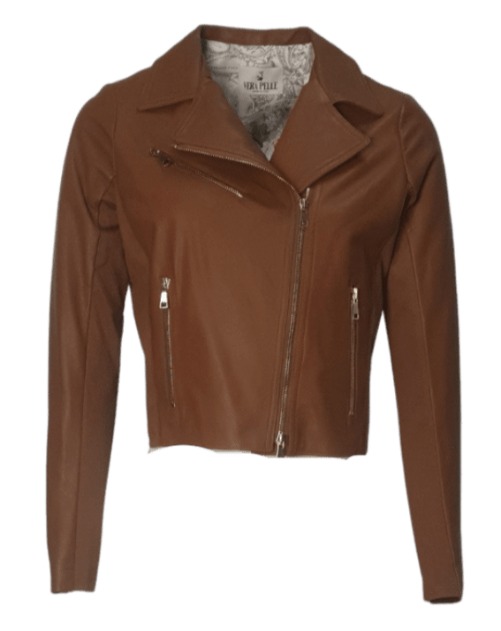 Italian design genuine leather jacket made of lambskin. This supple leather jacket has a nice fit because it has a jersey stretch fabric on both sides.
