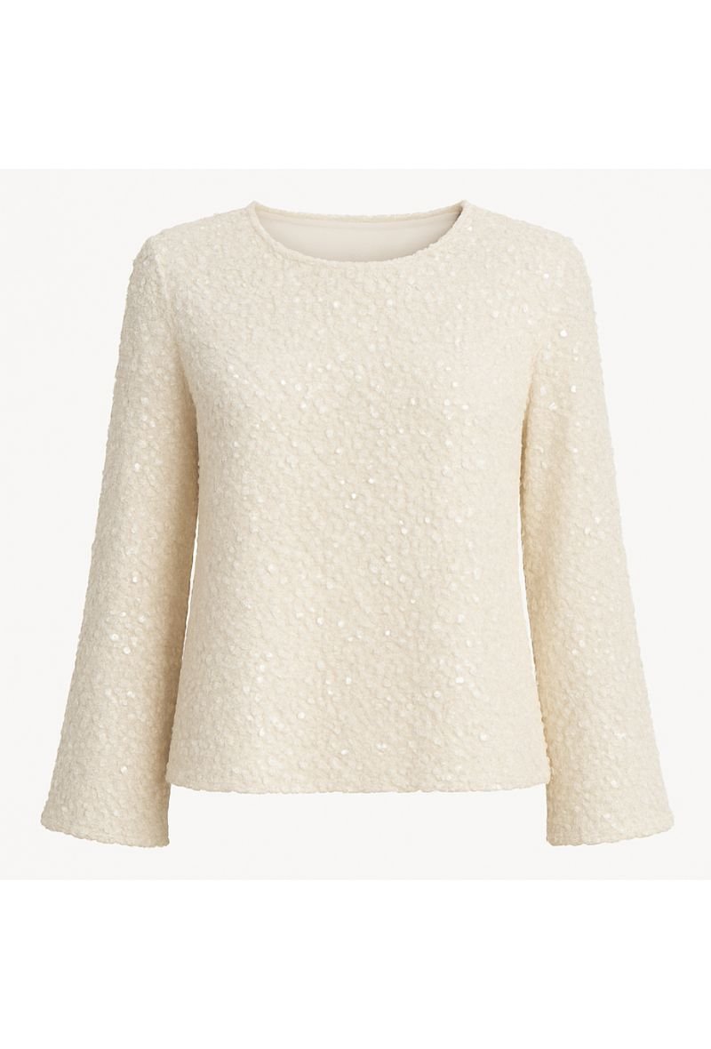 Deze elegante top van Frank Lyman straalt klasse en verfijning uit. Uitgevoerd in de stijlvolle kleur Winter White, is dit item afgewerkt met een schitterende paillettenstructuur die subtiel licht vangt en de top een luxueuze uitstraling geeft.