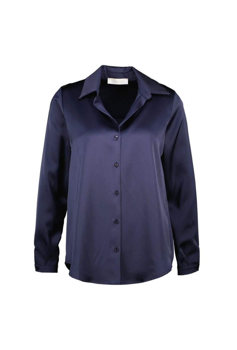 De Leonie blouse van Amélie & Amélie is een elegante klassieker met een satijnachtige glans en een comfortabele, soepelvallende pasvorm. Het model heeft een klassieke kraag, lange mouwen met manchetsluiting en een rechte knopenlijst, waardoor deze blouse zowel zakelijk als casual te dragen is.