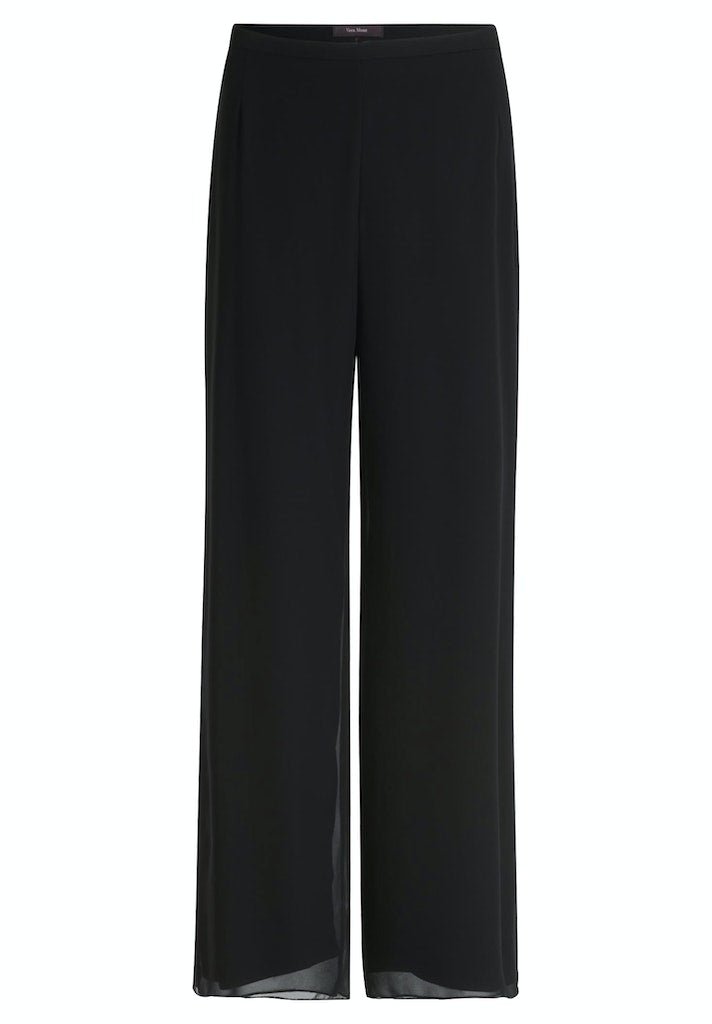 Deze elegante wide-leg pantalon van Vera Mont is de perfecte combinatie van comfort en stijl. Gemaakt van luchtige chiffon met een zachte voering, zorgt deze broek voor een moeiteloos flatterende look die geschikt is voor zowel feestelijke gelegenheden als formele momenten. De soepele stof valt losjes langs het lichaam en creëert een vrouwelijke, vloeiende beweging bij elke stap. Dankzij de hoge taille en de onzichtbare zijrits sluit de pantalon mooi aan, terwijl het minimalistische ontwerp zorgt voor een tijdloze uitstraling.