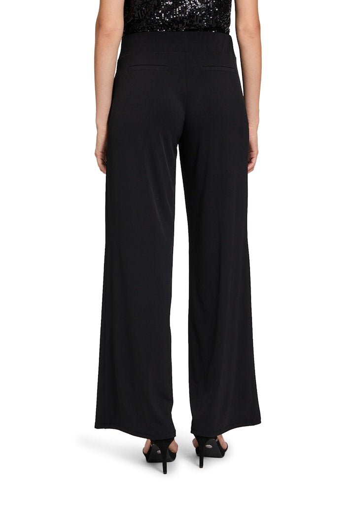 Til je look moeiteloos naar een hoger niveau met deze elegante wijde pantalon van Vera Mont, verkrijgbaar in zowel klassiek zwart als stijlvol navy. Deze broek combineert comfort en klasse dankzij de soepele stof en flatterende pasvorm. De hoge taille met een brede, elastische tailleband zorgt voor een gestroomlijnd silhouet en ultiem draagcomfort.